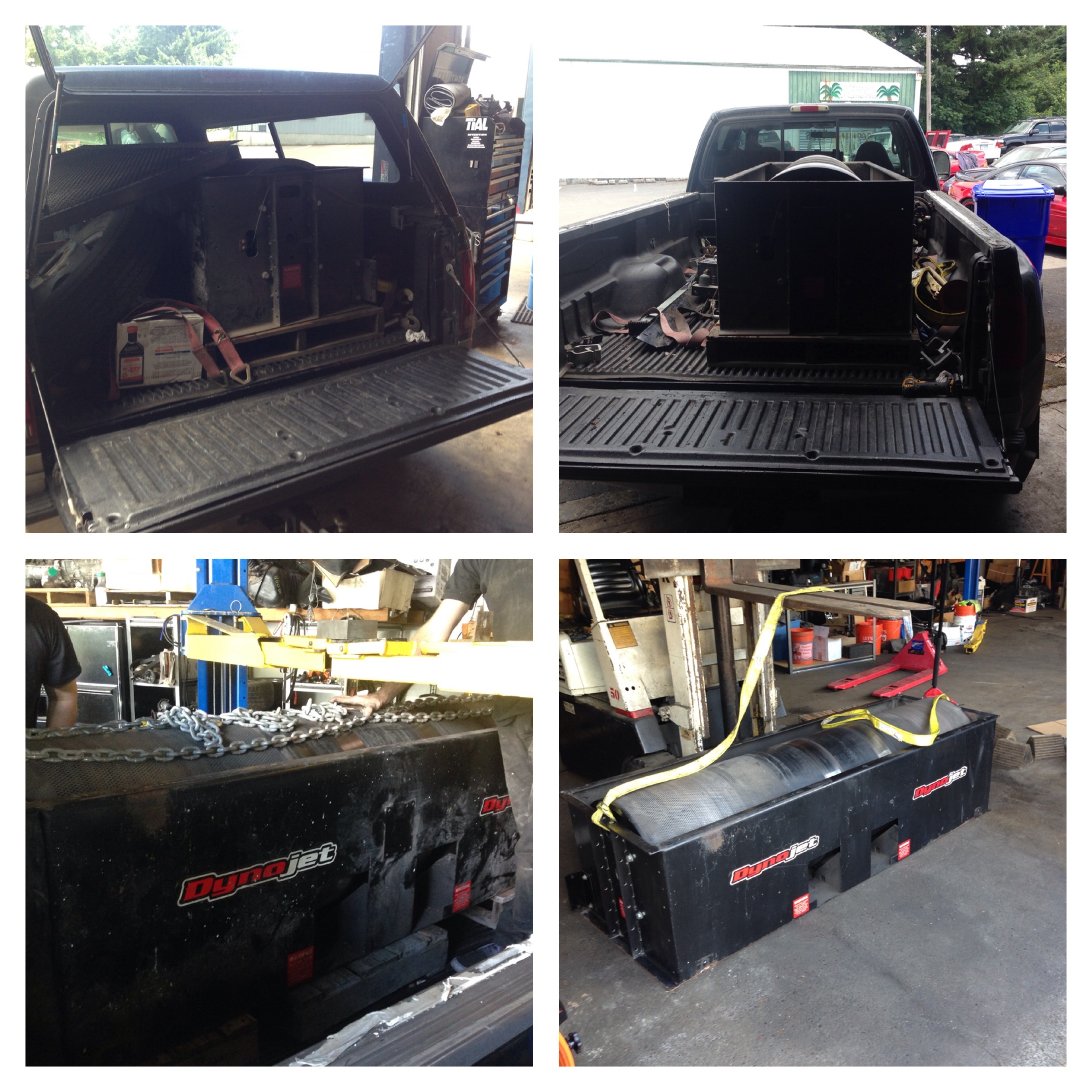 Unloading dyno from back pickup after transporting from Topeka Kansas (1900+miles) away.