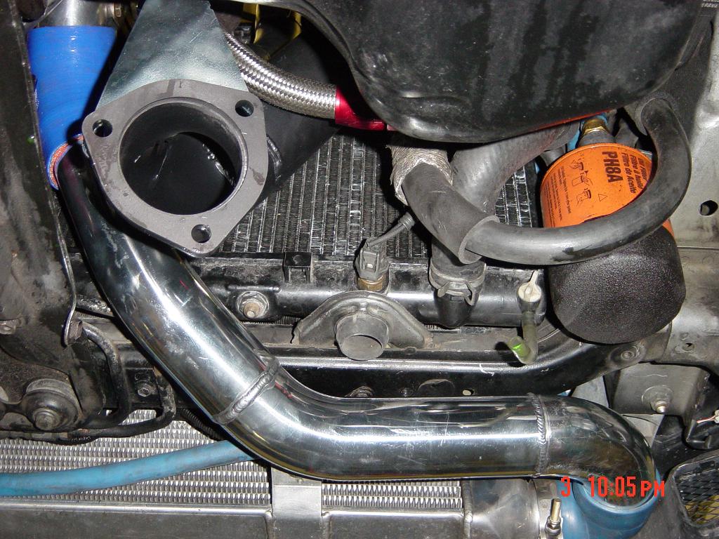 New custom fabricated hot pipe from turbo to IC. TIG welded out of polished aluminum tubing.