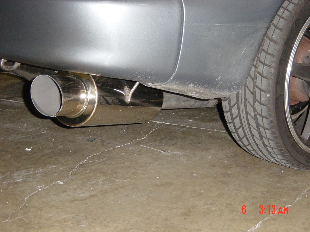 Fabricated a custom 3" mandrel bent exhaust front to back with a 3" resonator and a 23" long polished SS vibrant muffler. You can hear the turbo spinning through this exhaust! The piping was routed under the rear cross-member. Would be very tight ground clearance if the car was lowered.