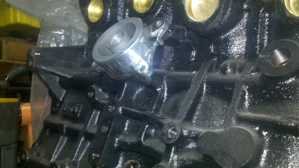 Polished oil cooler mount.