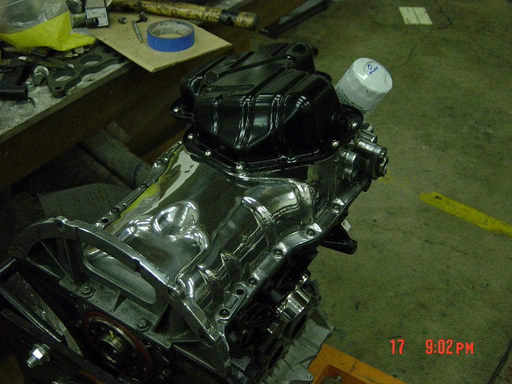 Polished Gen3 oil pan on 2.2L gen 3 stroker