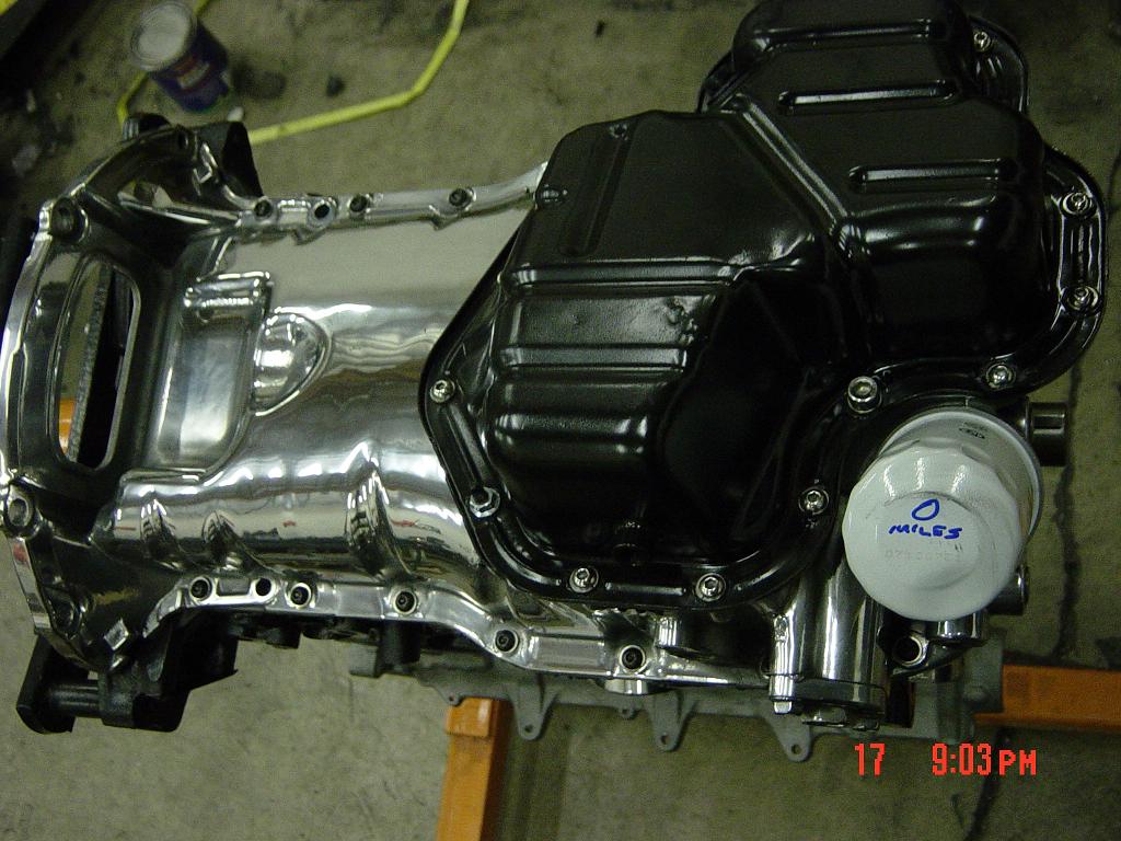Another pic of Oil Pan. Black socket head bolts into polished portion, polished SS socket head bolts into black pan.
