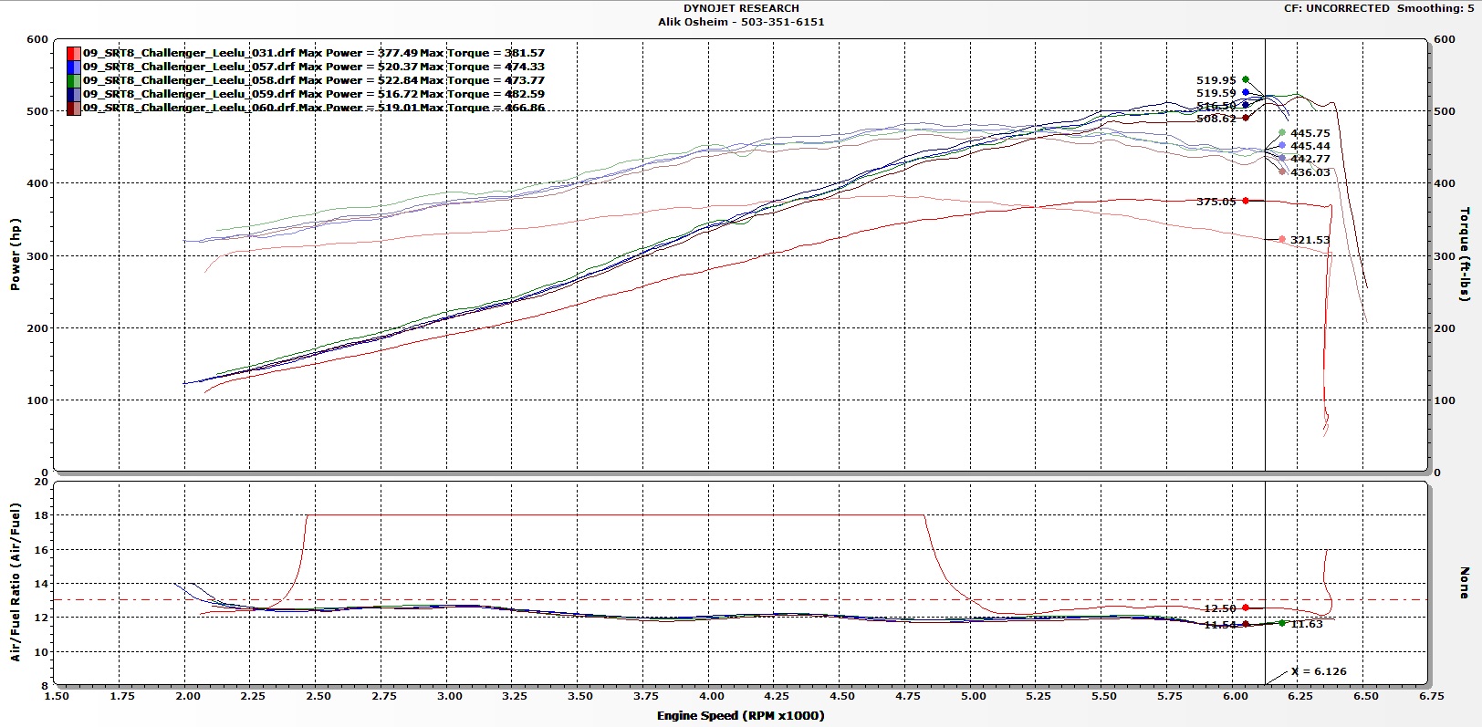 8psi Dyno Runs Vortech Custom Johan Tune 10-29-2011 vs. Stock dyno runs before supercharger installation.
