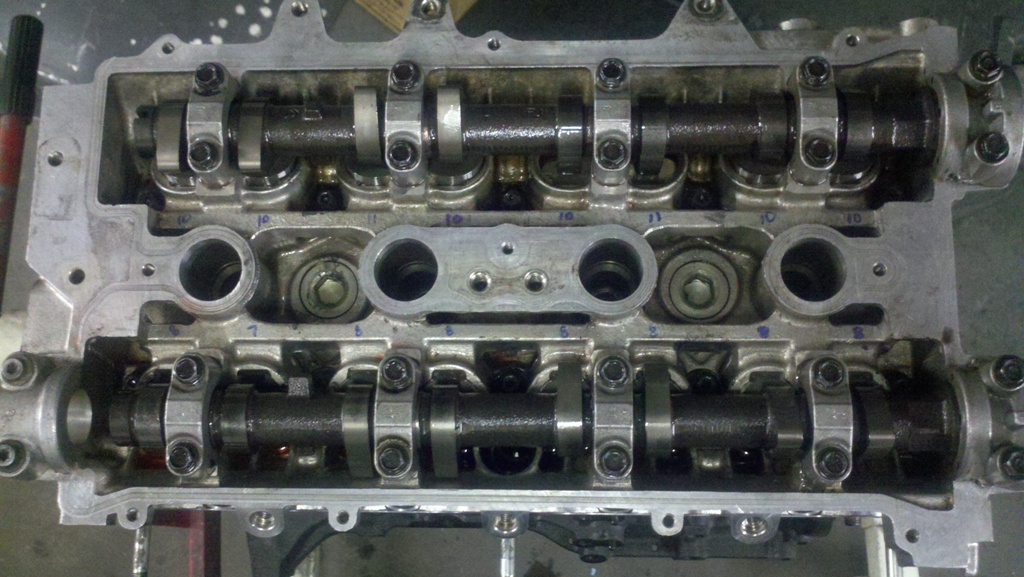 Cams Installed with Shimless Buckets -- the 3rd generation 262 Kelford cams required clearancing the head to allow the lobes to rotate all the way around -- 10.5mm lift!