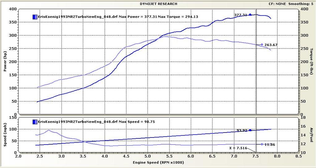KO Racing 2.0L built engine, JE pistons, 1mm OS Ferrea valves, shimless buckets, porting and polishing, Eagle rods, HV oil pump, ARP main studs, ARP head studs, Engle valve springs, TTE 1.4mm head gasket, Kelford 258 duration cams 110 intake centerline, 100 exhaust centerline (estimated)