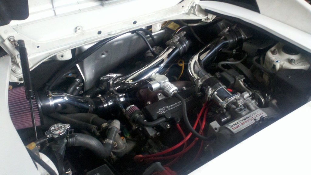 KO Racing 2.2L Blacktop Stroker engine (91mm stroke), 1mm OS Ferrea valves, custom Ross Racing .020" oversize 8.0:1 pistons, Eagle rods, ARP head studs, ARP Main studs, KO Racing modified oil pan, high volume oil pump, new OEM water pump, 1.4mm Cometic head gasket, Kelford 258 duration cams, Fidanza cam gears, ported/polished head, KO Racing 3" intake, KO Racing Street Brawler 46trim t3/t4 (.48 A/R turbine), Spearco IC with KO Racing intercooler pipes, MSD plug wires, MSD Blaster SS Coil, Precision 880cc/min injectors, Wolfkatz top feed fuel rail, Walbro 255 fuel pump