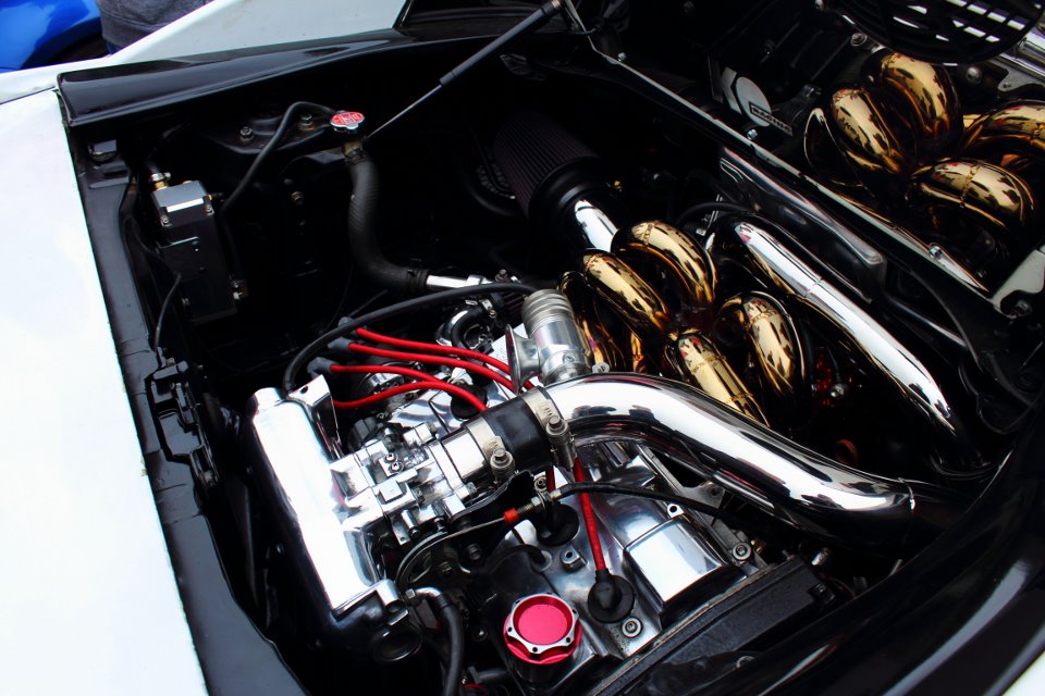 Engine bay of Phantom MR2. 2.0L 3SGTE built by KO Racing. 1mm OS Valves, Precision 5558 turbo, KO Racing manifold, and lots of polishing. Wire tuck by KO Racing, Inc.