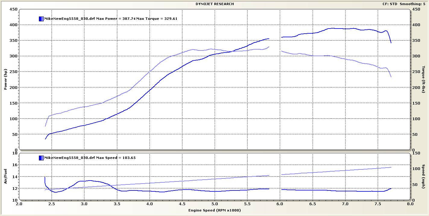 KO Racing SuperStock Motor with 1mm OS Supertech Valves, JE .020" over pistons, KO Racing Street Brawler Ramhorn Manifold, Precision 5558 turbo, Tial MVS wastegate, Engle Valve springs, Gen 3 3SGTE intake cam, Gen 2 3SGTE exhaust cam retarded 6 degrees on AEM cam gear, 850cc/min Siemens Top Feed injectors, KO Racing Phenolic TVIS eliminator (brown), KO Racing 3" SS R1 exhaust (custom driver side exit), KO Racing high performance side mount intercooler, 92 octane Chevron Supreme fuel, Hydra Nemesis 2.17 tuned by Kris Osheim, KO Racing, Inc. 3rd Gear run. STD Correction.