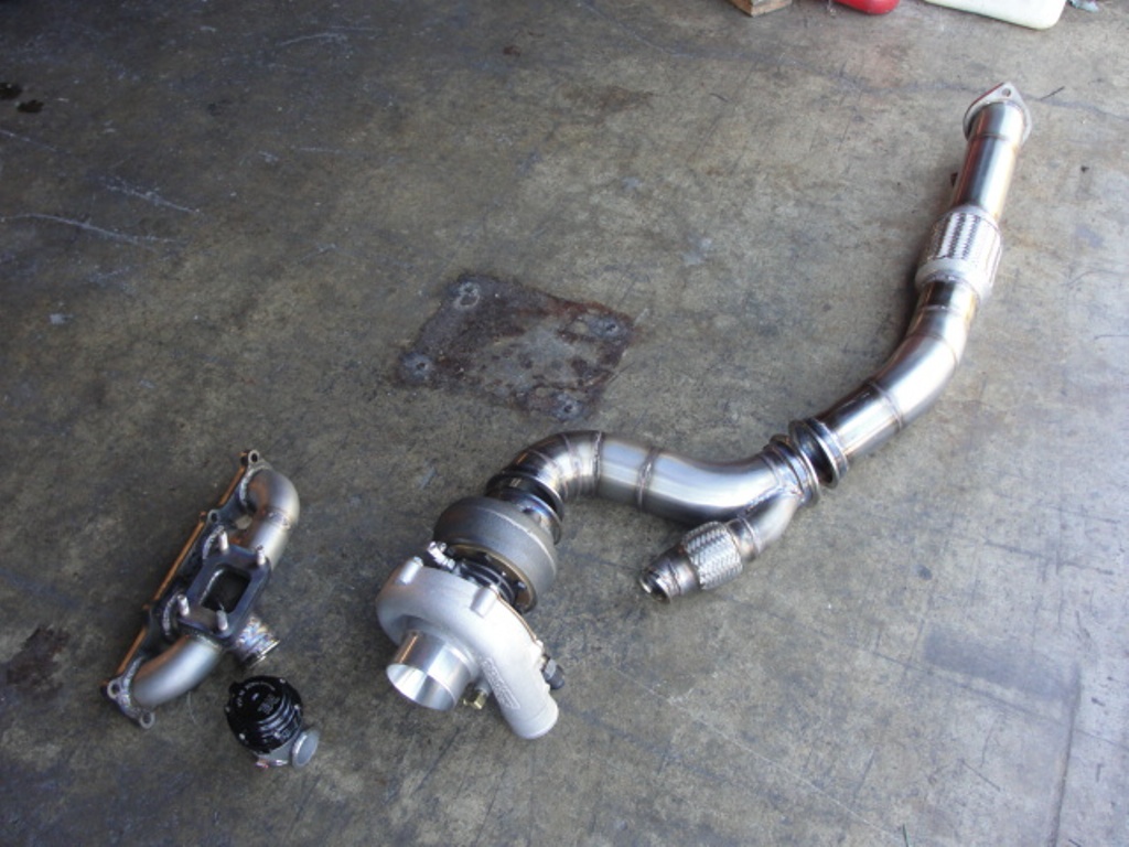 Completed downpipe and midpipe with revised v-band location and revised wastegate location on manifold.