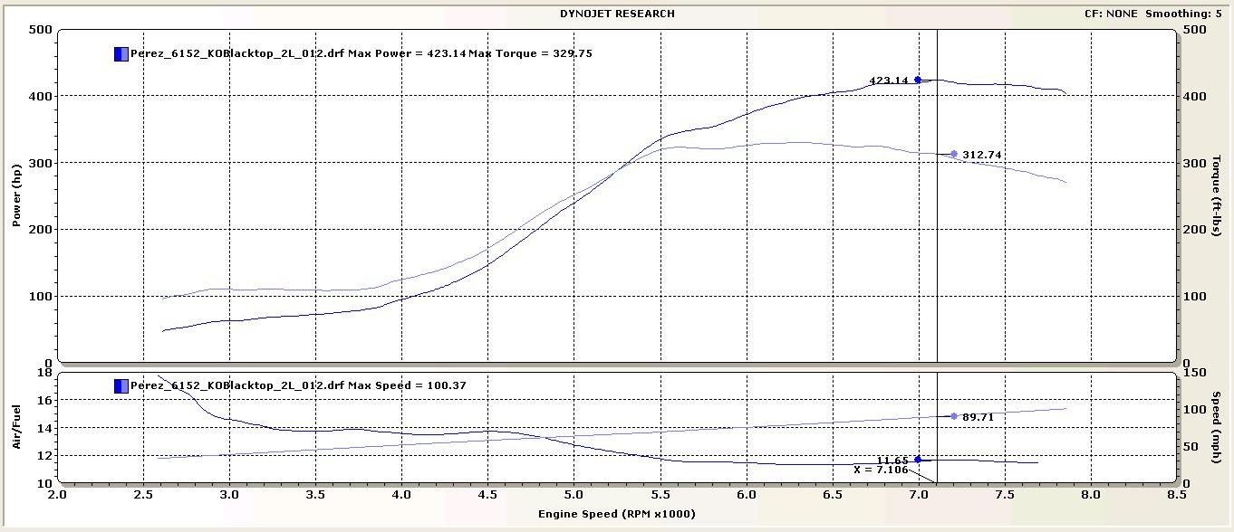 KO Racing Ramhorn manifold and turbo kit with Precision 6152 turbo, 92 octane pump gas, 20psi boost. Hydra Nemesis EMS tuned by Kris Osheim KO Racing, Inc.