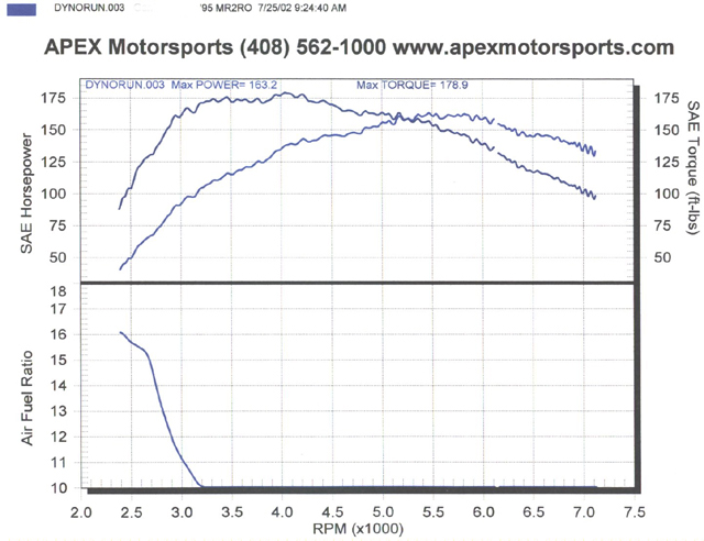 - Stock torque peak is 200 ft-lbs. @ 3200RPM (flywheel) If you examine the dyno graph below, you can see that this translates into almost 175 ft-lbs. of torque at the wheels at 3200RPM. Thus it is safe to draw the conclusion that an MR2 Turbo which has at least 175 ft-lbs to the wheels by 3200RPM can be characterized as having "stock spool" or "stock lag