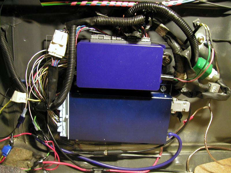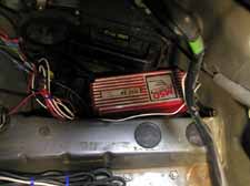 When running high boost, it becomes increasingly difficult for the stock ignition to light off the mixture in the cylinders. The massive amount of boost being forced into the engine can literally “blow out” the spark, like a candle on a birthday cake. To prevent this from happening, I installed an MSD 6A, with an HVC "Blaster" coil. The MSD is fired by one of the auxiliary outputs on the SparkDog.