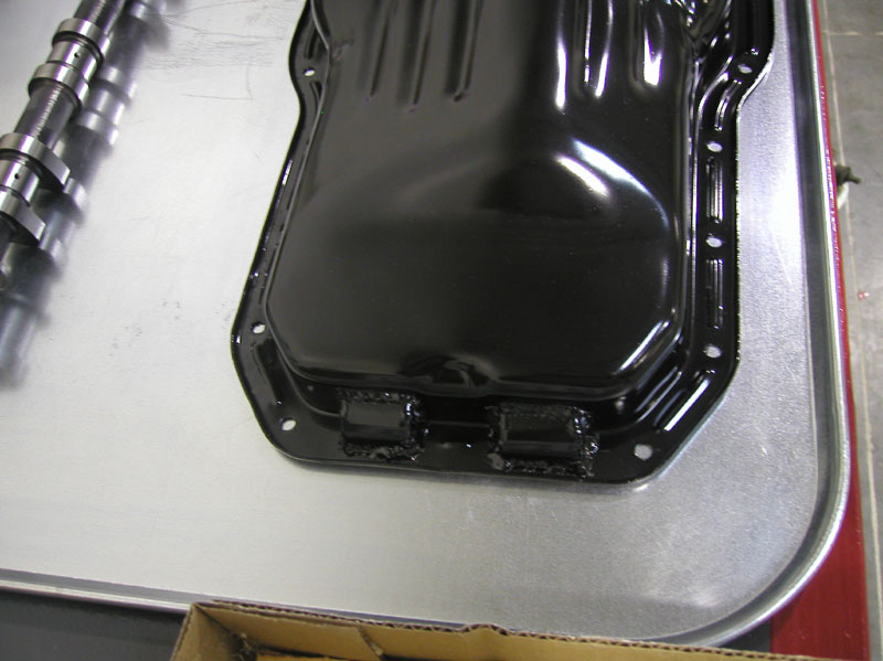 - A set of Eagle H beam rods are sourced for the project. The stock rods are very capable, and would be able to support the horsepower and torque increase, but the Eagle rods are almost 200 grams lighter per rod, reducing the rotating mass of the engine, while not sacrificing strength or reliability. ARP Rod bolts come standard with the Eagle rods, and are utilized in the project, along with ARP Head studs and Main studs. Two of the ARP main studs are slightly longer than the OEM fasteners. As a result, reliefs must be created in the stock oil pan to accommodate the longer studs.