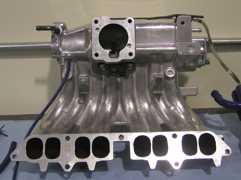 On milder engines, the TVIS should be retained, and the opening point controlled, to help decrease lag. The head was port matched to the spacer. The OEM intake manifold was sent out to Extrude Hone, to have the runners flow-matched, and the overall flow increased. In stock form, the #3 runner flows 13% more air than the other three. After the extrude hone process, the runners are all flow matched to within 3% of each other.