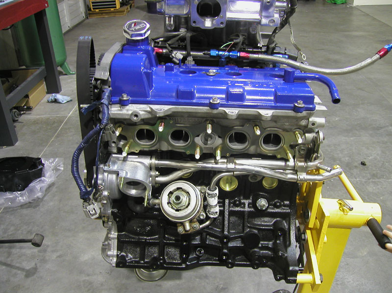 - I had Chris build me a new shortblock, using a 5S block and crank from a 1998 Toyota Camry, my Eagle rods, CP 9:1 CR forged pistons, and a TTe multilayer steel head gasket. He also ported and shimmed the oil pump for more flow and higher pressure, allowing high RPM operation of the engine, without risk of oil starvation. He refinished both mating surfaces to RA34, and assembled the long block. I have the engine back in the car, and am in the process of putting it through a 1000 mile break-in period, before installing the top feed rail, 880cc/min injectors, and heading to the dyno to tune for power.