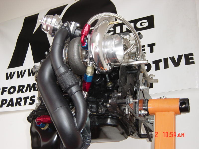 KO Racing turbo kit for the MR2 and Celica Alltrac/GTFour 3SGTE engines. The Street Brawler GT Series Turbo kit was developed as an expansion of the already widely successful T3/T4 versions that have been making and breaking records since 2003. The reputation of the Garrett GT30R and GT35R is well known with the capability of supporting upwards of 600whp (35R). The kit includes a manifold adapter, which is CNC machined from a solid steel billet and bolts to the stock manifold to retain OEM reliability. The other components include a full 3" mandrel bend down pipe with integrated 1.75" diameter wastegate dump tube, with it's own flex section, a Tial 38mm external wastegate,and all lines, gaskets, and mounting hardware needed to install the kit. More pictures can be seen in the photo gallery. These turbos are dual ball bearing, and water cooled standard.