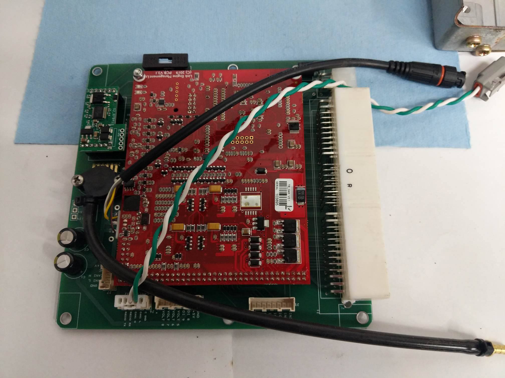 NOTE: Picture shown above with custom CAN bus expansion harness, not included in purchase price of KO Racing adapter board. The board pictured above shows a link ecu top board as well, but that is not included with this purchase.