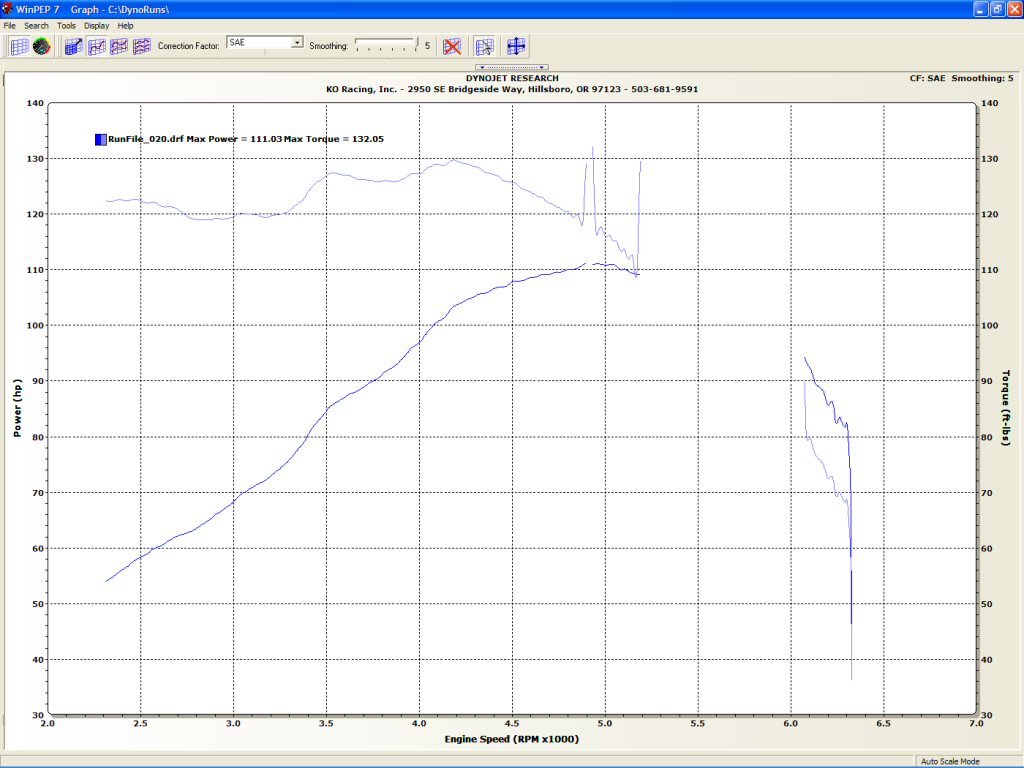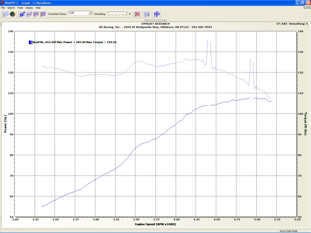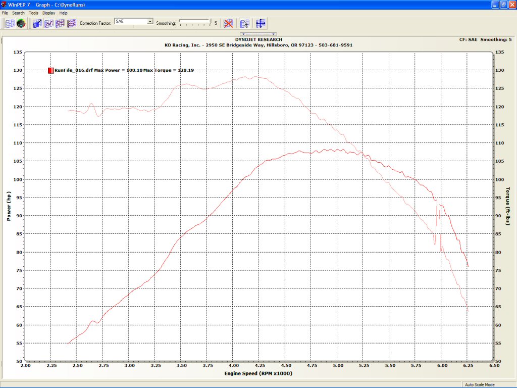 We tested several both 2.25" and 2.5" diameters of pipe and found no losses in the low end of the rpm range even with the somewhat large 2.5" pipe size, and a few horsepower increase on the top end. Testing was performed on one of our customers' cars, a 93NA, with an aftermarket intake and nology wires as the only additions to the exhaust systems tested. All exhaust systems were tested with backup runs.