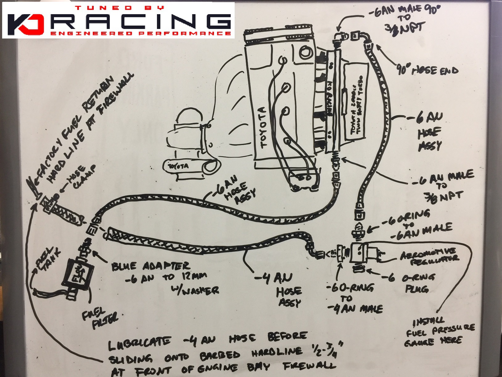 These line kits have been successfully used by KO Racing on vehicles making in excess of 550whp (with race fuel or 425whp on an ethanol blend) when combined with the appropriate injectors and top feed fuel rail -- not configured or recommended for use with a stock fuel rail.